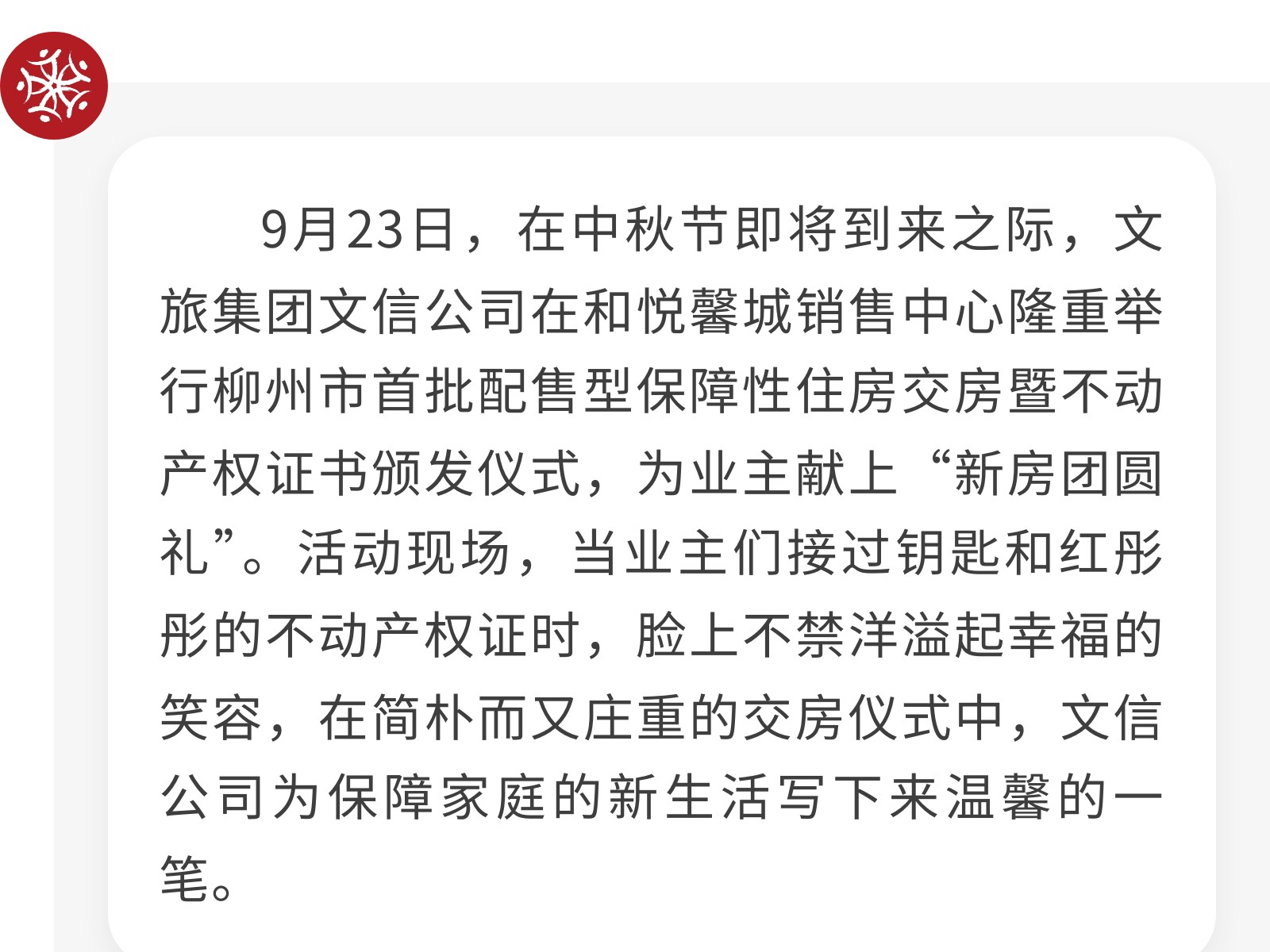 我市首批配售型保障性住房實現“交房即交證” 發(fā)布時間:2025年09月27日 10時來源:本站原創(chuàng)瀏覽:79 人次