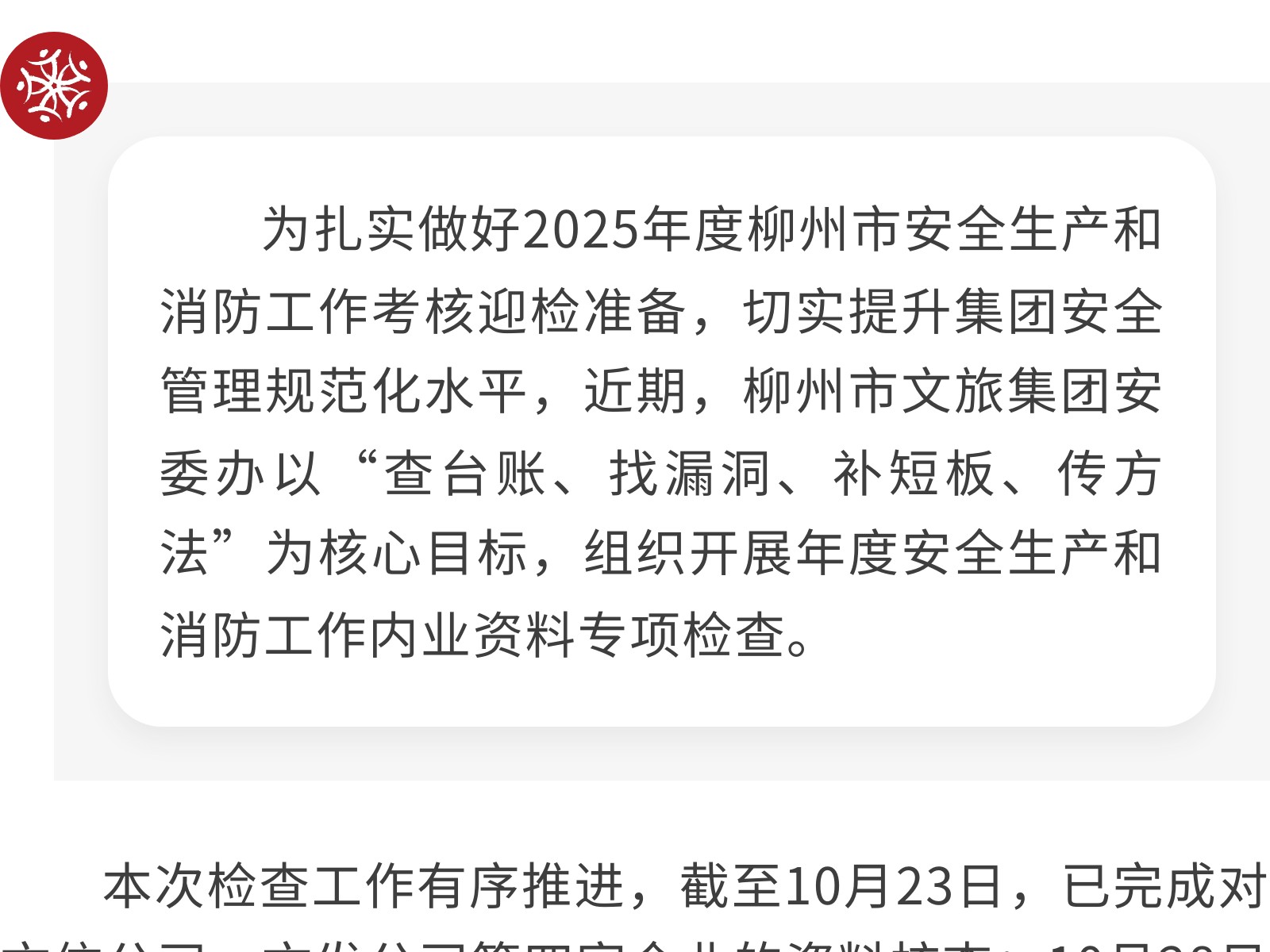 專項(xiàng)檢查安全內(nèi)業(yè)資料 以查促改筑牢安全防線 發(fā)布時(shí)間:2025年12月01日 10時(shí)來源:本站原創(chuàng)瀏覽:60 人次