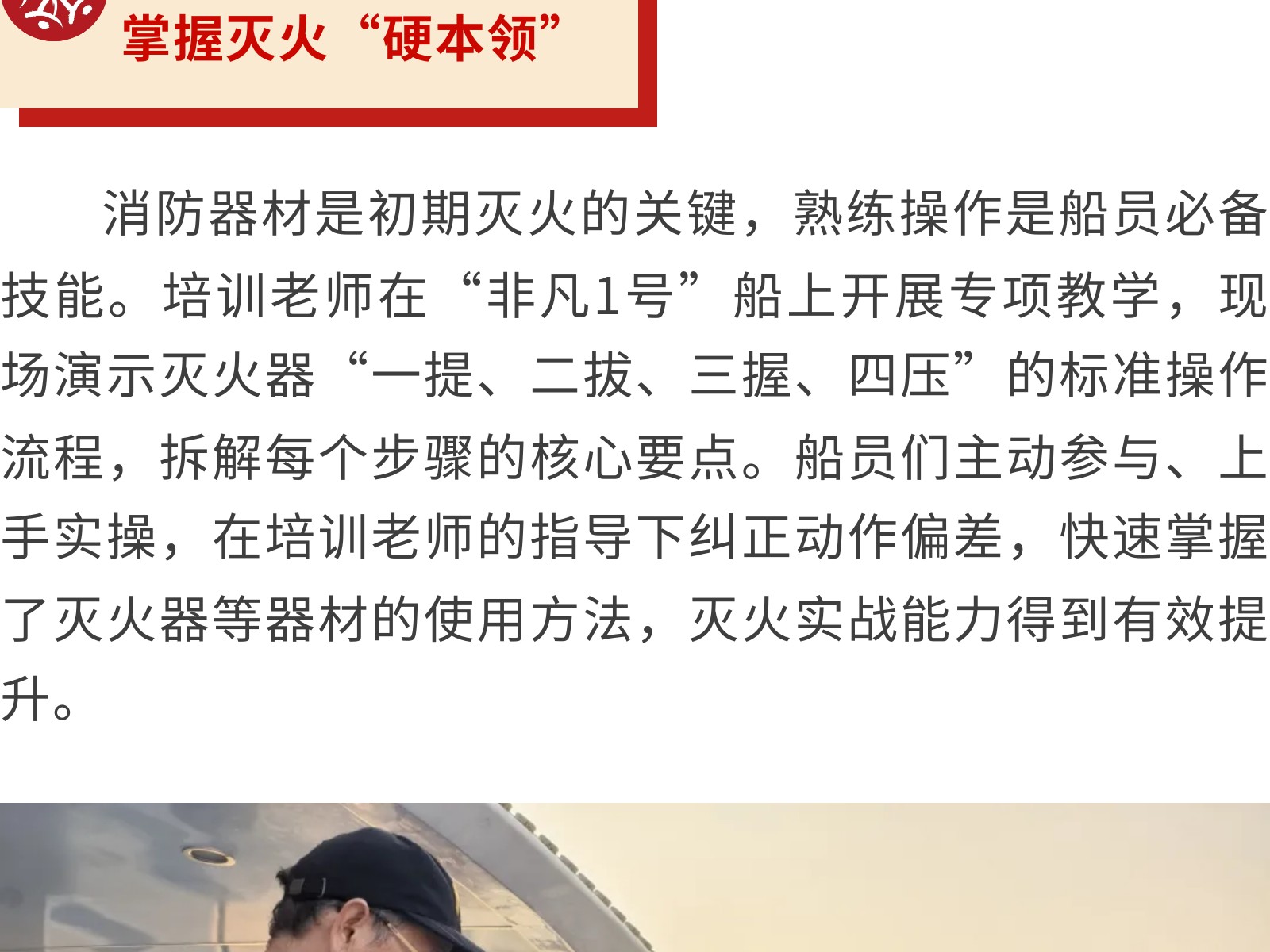【強(qiáng)化船上消防,守護(hù)航行安全】銀柳水上旅客運(yùn)輸有限公司開展消防安全培訓(xùn)活動(dòng) 發(fā)布時(shí)間:2025年12月09日 10時(shí)來源:本站原創(chuàng)瀏覽:48 人次