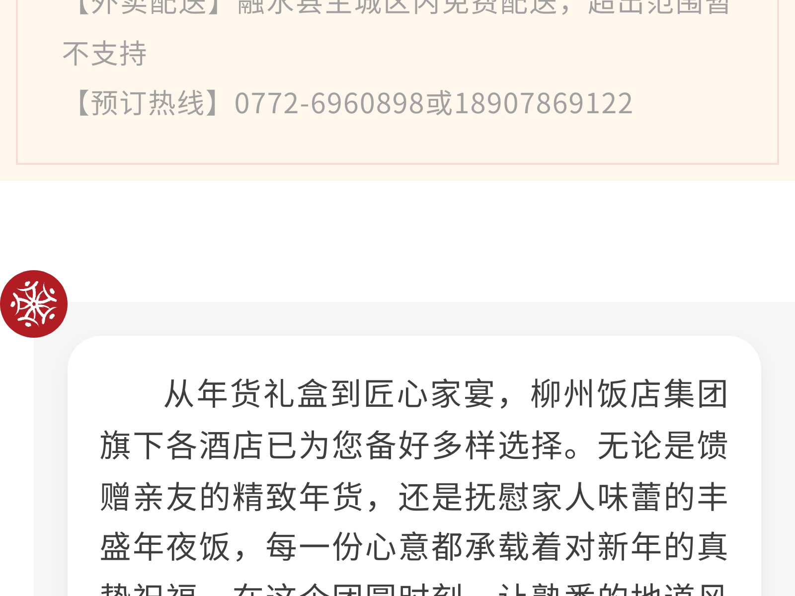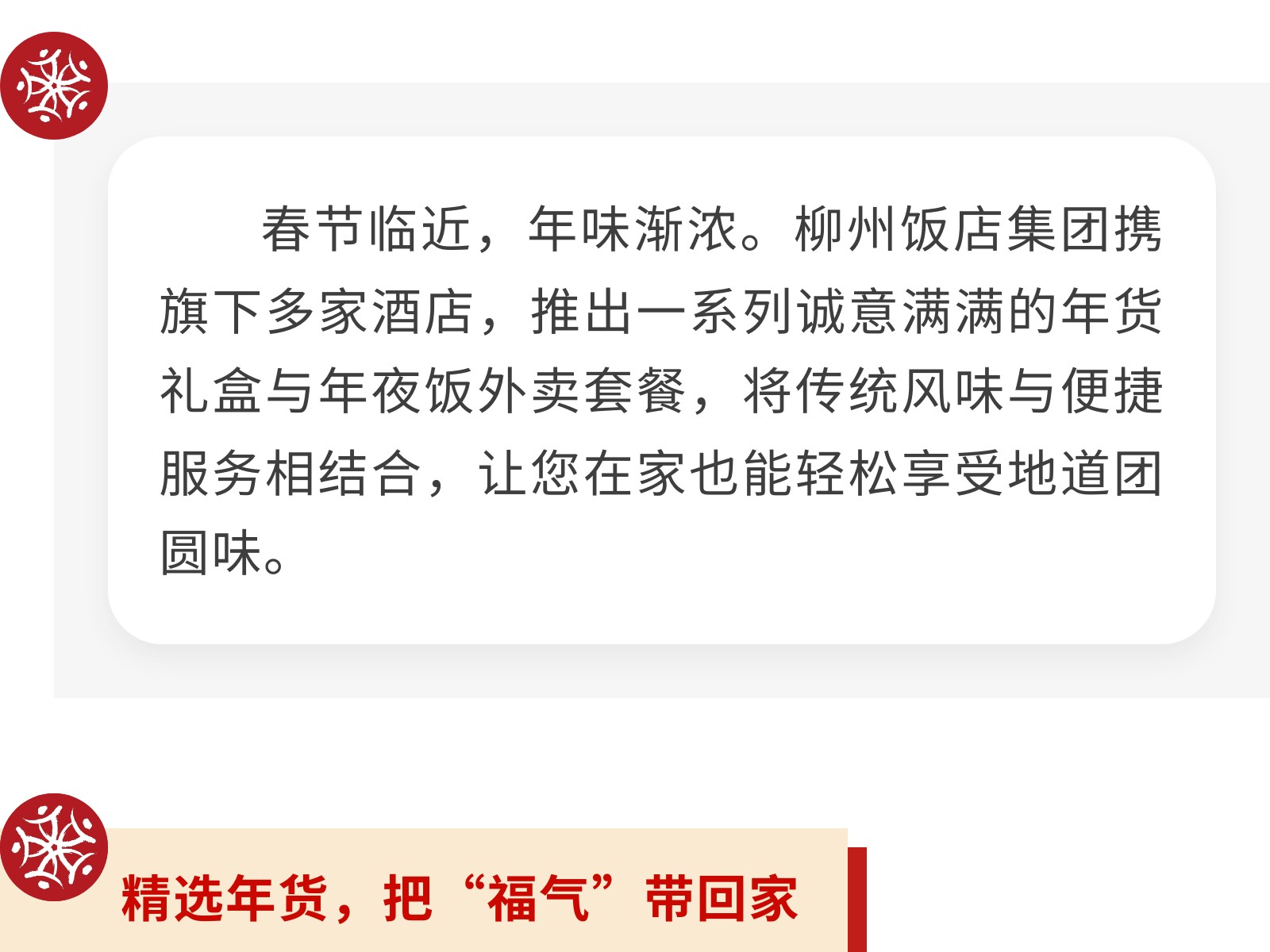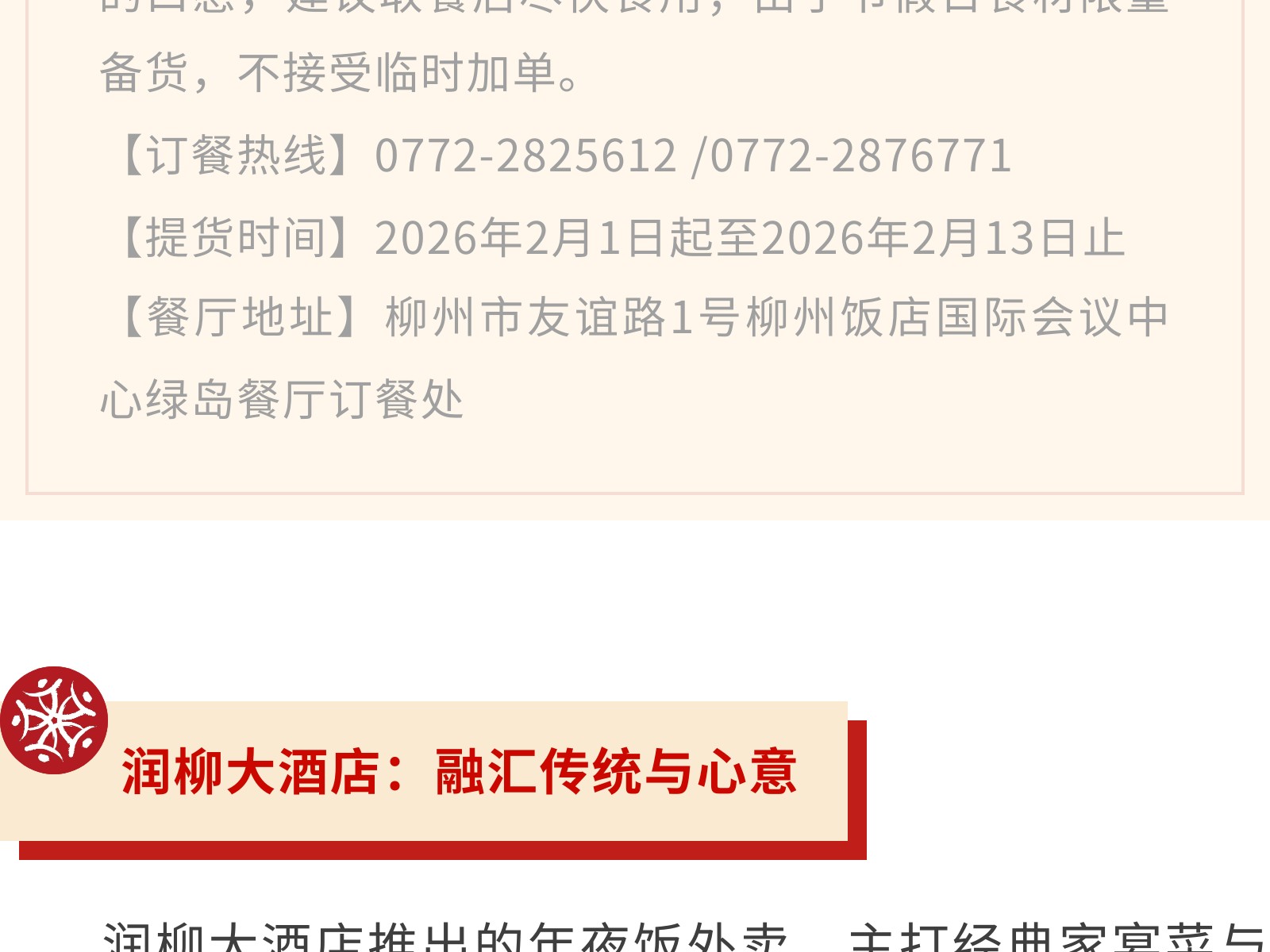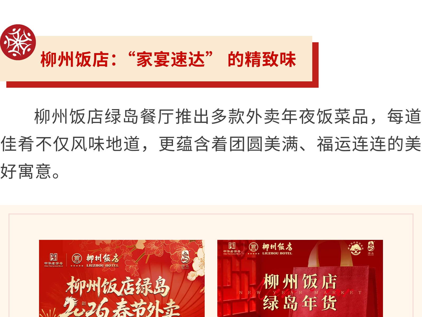 【一口柳州味,滿堂新年紅】文旅集團旗下柳州飯店集團年貨&年夜飯指南,把團圓“打包”回家 發(fā)布時間:2026年01月16日 14時來源:本站原創(chuàng)瀏覽:44 人次